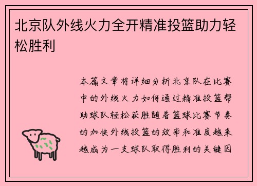 本篇文章将围绕“北京老沈领军力克对手挺进...